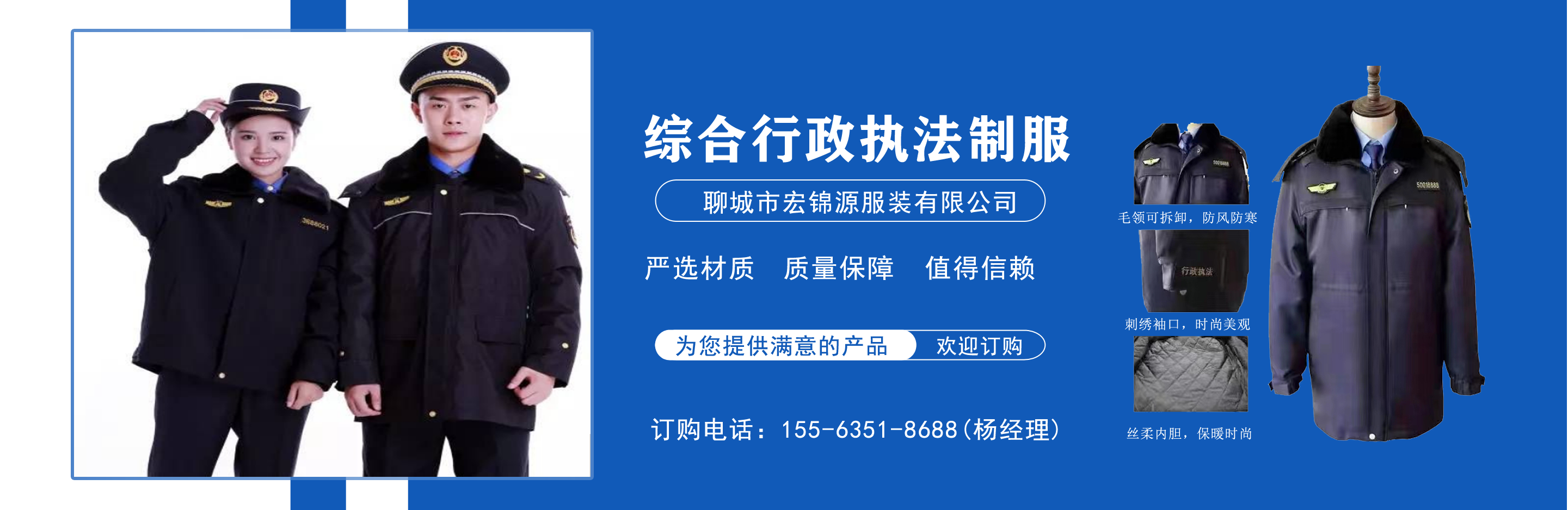 綜合行政執(zhí)法制服,交通執(zhí)法服裝,應(yīng)急管理執(zhí)法標(biāo)志服,市場(chǎng)監(jiān)督管理標(biāo)志服,農(nóng)業(yè)執(zhí)法服裝,生態(tài)環(huán)境保護(hù)制服,文化市場(chǎng)執(zhí)法服,城管標(biāo)志服裝廠,衛(wèi)生監(jiān)督制服,六部門(mén)標(biāo)志服廠家-聊城市宏錦源服裝有限公司 公司簡(jiǎn)介/ ABOUT